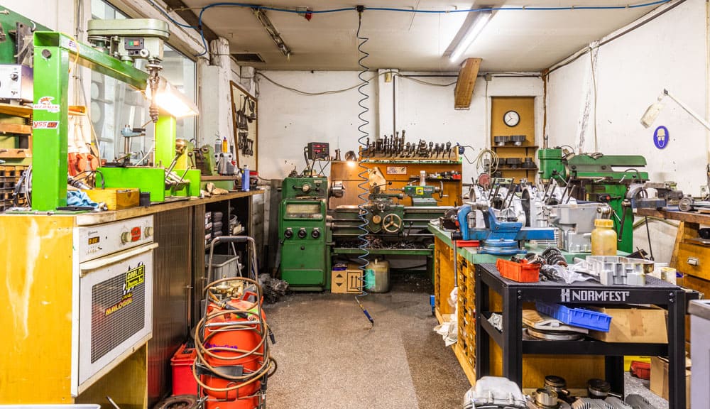 Wir erledigen alle anfallenden Arbeiten bei uns im Haus, dafür ist unsere Werkstatt mit allem ausgestattet, was man für die Komplettrestaurierung von Fahrzeugen braucht: Vom Glasstrahlgerät über Honbank bis zur Walzenbiegemaschine.
